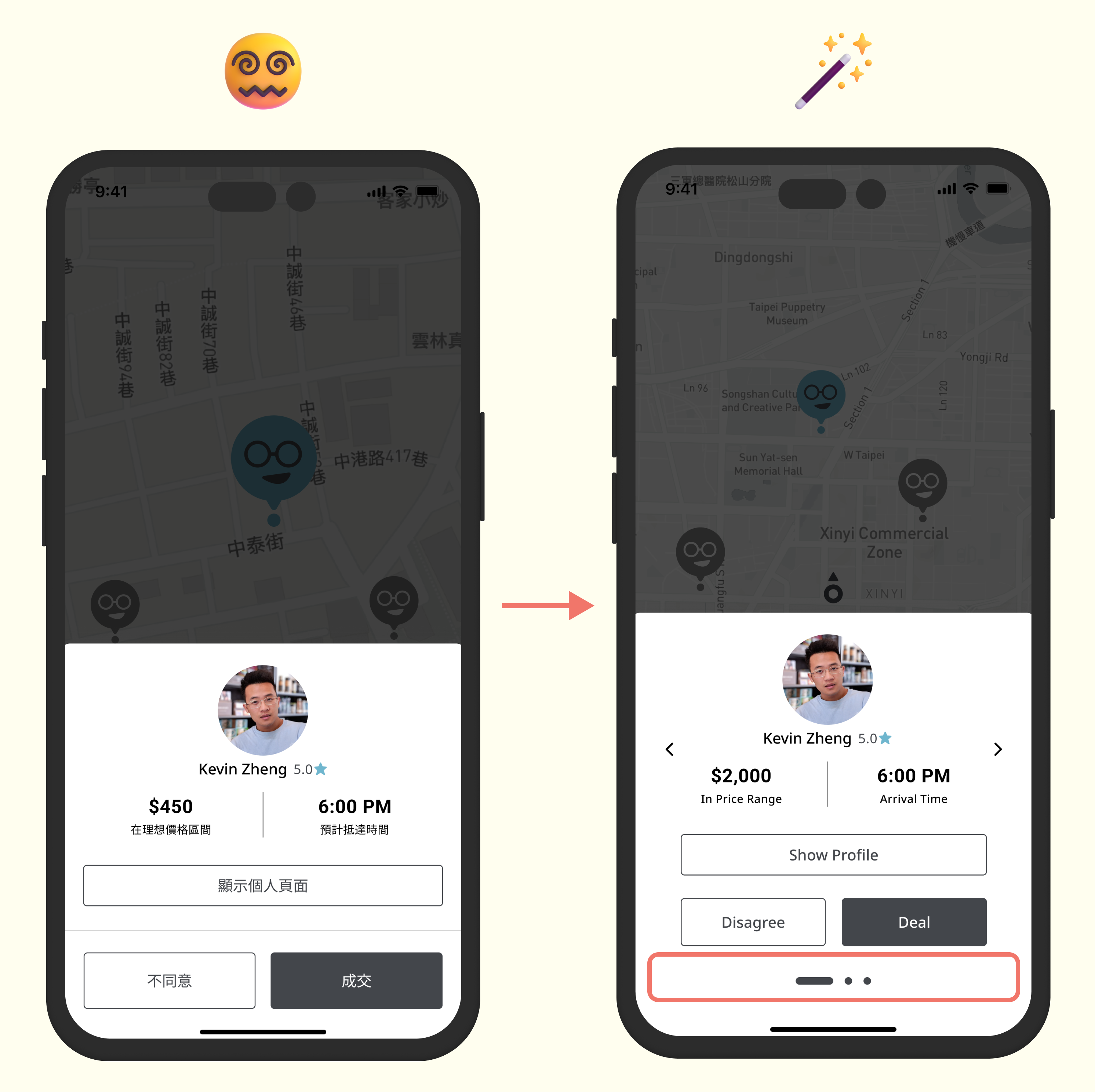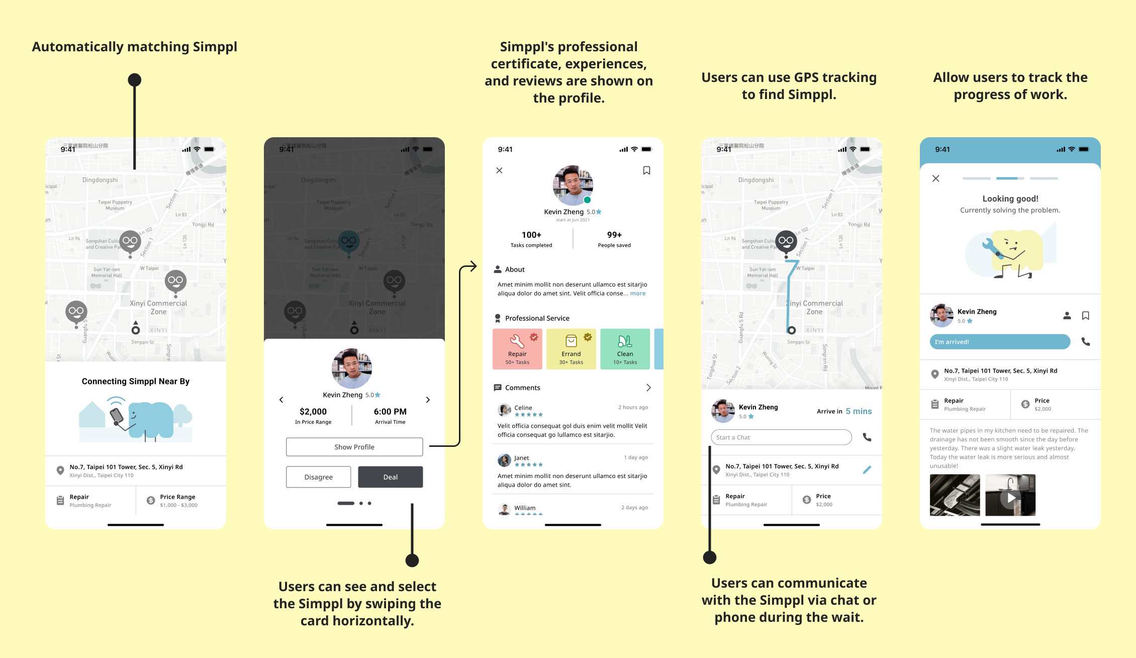 When there are multiple bidders at the same time, users can swipe the card horizontally to see and select the best Simppl.